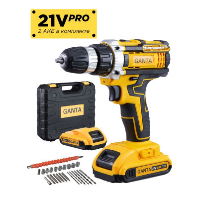 página delantera > Productos oficiales > GANTA Taladro atornillador inalámbrico GANTA 2102LI Pro, 2Ah, 21V, 1350 rpm, 65Nm, 10mm, retroilumin