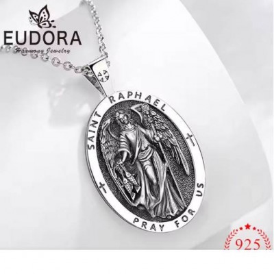 página delantera > Eudora-collar de plata de ley 925 con amuleto del Arcángel, colgante de Cruz, joyería religiosa, reg