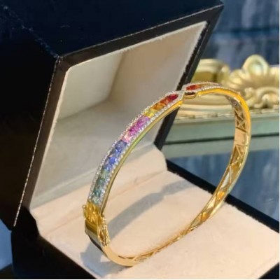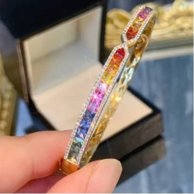 página delantera > Aazuo Original 18K oro amarillo Color natural zafiro diamante Real línea de arco iris brazalete para