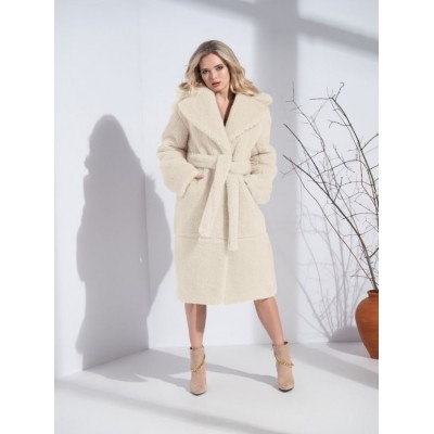 página delantera > Productos oficiales > RUGGI/Abrigo de pelo de lana natural de oveja para mujer
