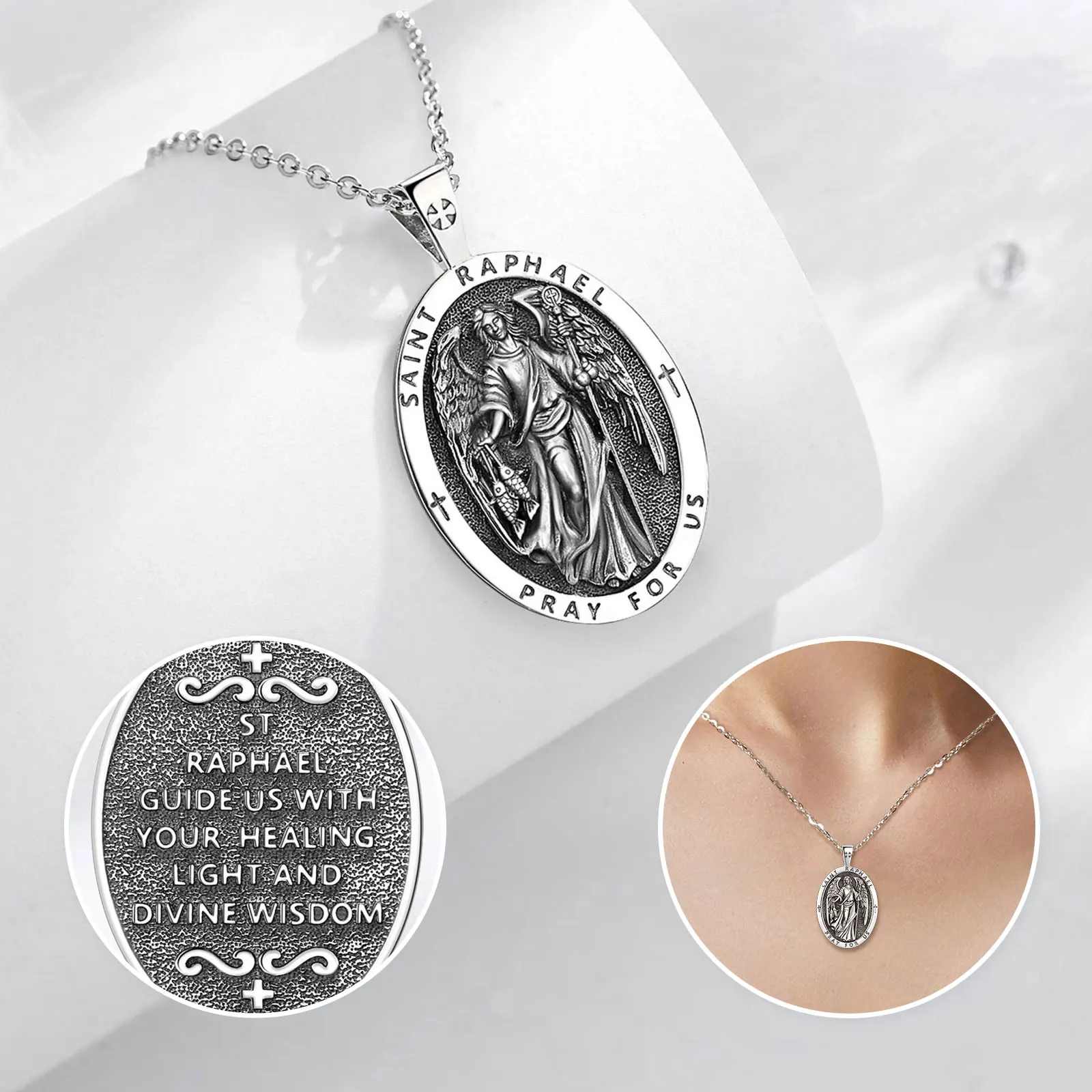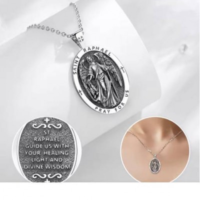 página delantera > Eudora-collar de plata de ley 925 con amuleto del Arcángel, colgante de Cruz, joyería religiosa, reg