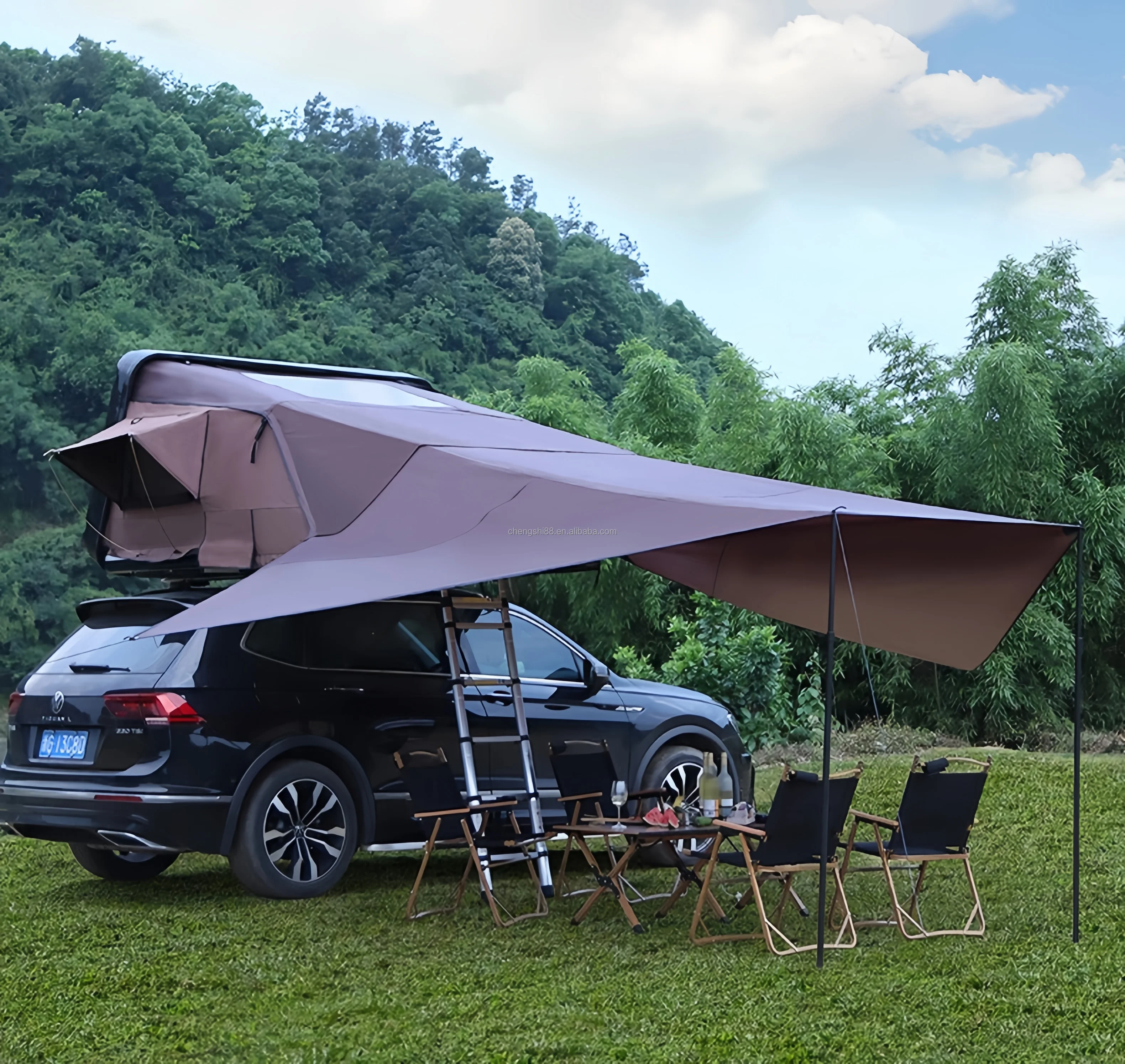 Tienda de campaña con techo de carcasa dura ABS, impermeable, con cubierta abierta lateral, para 3-4