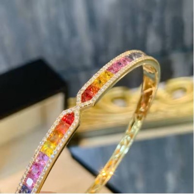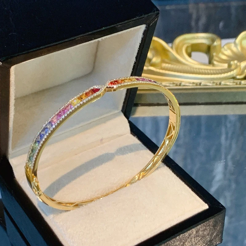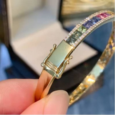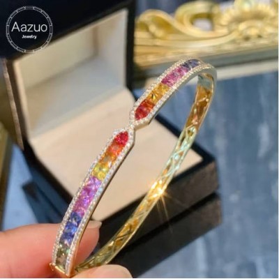 página delantera > Aazuo Original 18K oro amarillo Color natural zafiro diamante Real línea de arco iris brazalete para